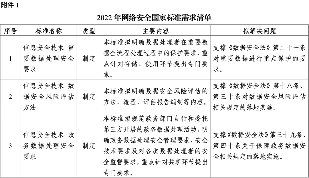 以下為2022年網(wǎng)絡(luò)安全國(guó)家標(biāo)準(zhǔn)需求清單:
